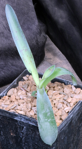 This is an intergeneric hybrid is between an Agave and Manfreda maculosa. This one has arching reddish-green leaves with darker purple spots when grown in sun. These plants are rooted offsets in 5-inch pots.