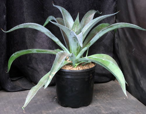 This is an intergeneric hybrid is between an Agave and Manfreda maculosa. This one has arching reddish-green leaves with darker purple spots when grown in sun. These plants are rooted offsets in 2-gallon pots.