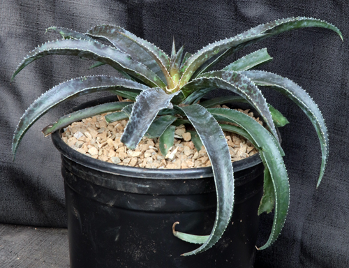 This is a intergeneric hybrid is between an Agave and a Manfreda that has a distinctive appearance. The leaves are flexible with a gray-purple color and occasional darker purple spots. These plants are rooted offsets in 2-gallon pots.