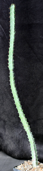 One of the most beautiful of the Euphorbias from tropical East Africa, Euphorbia greenwayi grows on rocky hillslopes. From central Tanzania, this subspecies is larger than the typical, has square stems that are subtly marked in rich blue-green and pale-gray colors, has brownish-red spines, and the cyathia have red stamens. We offer rooted cuttings of this species in 5-inch pots.