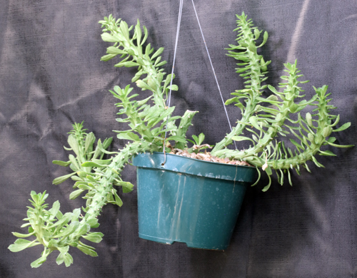 This relatively large Monadenium has elongated stems with abundant tubercles and green leaves clustered about the growing tips. This species occurs in northeastern Tanzania in the Pare District. These plants are rooted cuttings in 8-inch pots.