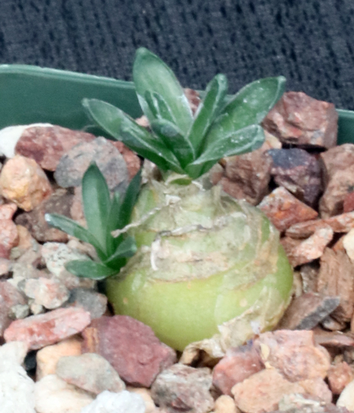 From South Africa, this recently described species is related to Drimia ciliata. It has a bulb with greenish-white layers that superficially resemble an onion. The leaves and light green and ovate. These plants are rooted offsets in 4-inch pots.