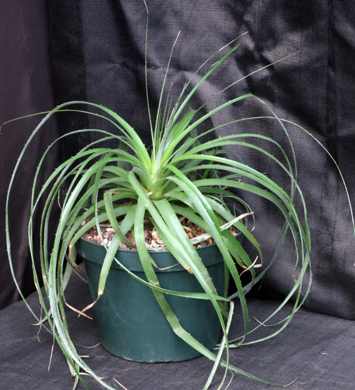 From Chile, this spiny, rather large terrestrial bromeliad has gray-green leaves. The flowers are lavender in color, at times even turquoise, making these quite attractive plants when in flower. These plants are seedlings in 10-inch pots.