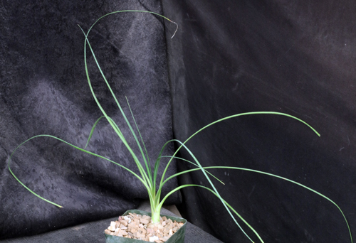 From Mexico, both of these species has grass-like leaves arising from a woody caudex that gets quite large. This hybrid has the Calibanus narrow leaves and we haven’t grown it long enough to determine what the caudex is going to be like. We offer seedlings in 4-inch pots.
