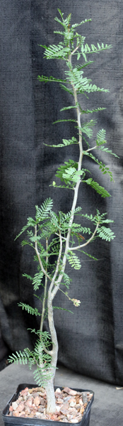 A native of Arizona and California, and extending southwards into Sonora and Baja California, this species of the genus Bursera develops a thick trunk with light gray-brown bark and finely pinnate leaves. We grow this species outside in Tucson, where it withstands 25F; heavier frost actually sculpts the plants into a nicer, more compact form. Our rooted cuttings are in 5-inch pots.