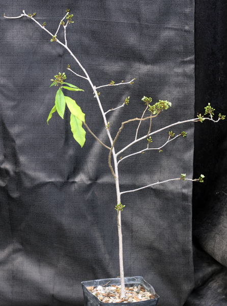 From the extreme northern tip of Madagascar, this is a spineless shrub with small leaves and a rather sizeable caudex that develops with time. The plants flower in spring with white to greenish white petals, and the plants are diecious. These plants are rooted cuttings in one-gallon pots.