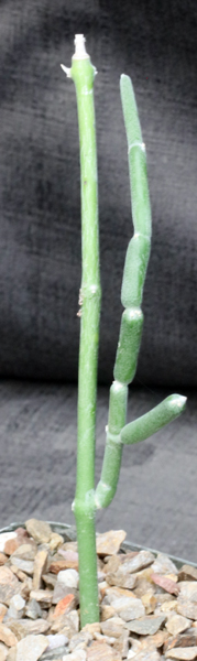 Not surprisingly, this species is from the island of Socotra south of Yemen. It is a straggling shrub notable for its zig-zagging green stems. This makes an extremely nice hanging pot plant. These plants are rooted cuttings in 4-inch pots.