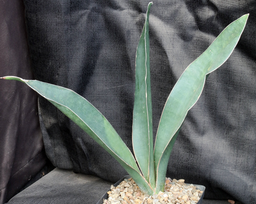 This species is from Yemen (10 Zayed Awad), although reputedly it has a distribution that extends southward into East Africa. These plants have dark gray-green paired leaves with little or no mottling. Offsets are produced on the underground roots, which extend laterally and parallel to the surface. The flowers are held in a short inflorescent and are mostly white. These plants are rooted offsets in one-gallon pots.