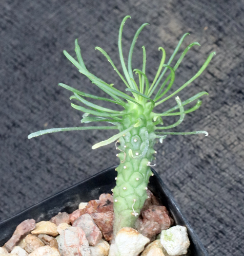 Closely related to E. filiflora, this species from the Northern Cape Province of South Africa is more cushion-forming and with more compact branches. The plants form large hemispherical cushions with time. These seedlings are in 2-inch pots.