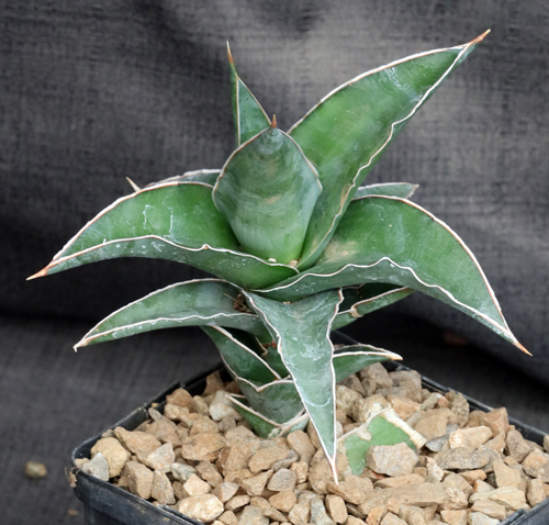 This recently described species, formerly known as S. ehrenbergii, is the large, arborescent-sized species from coastal east Kenya west of Malindi (WY 1158). The leaves are green, channeled, and stiff, and they tend to be held in a distichous rosette like an oversized form of S. powellii. These plants are rooted offsets in 5-inch pots.