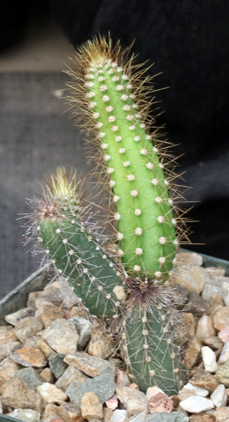 This species is from central Brazil. It has wand-like round stems that are brown-colored with dark spines. The flowers are relatively large and white. These plants are rooted cuttings in 5-inch pots.