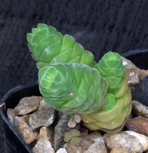 From South Africa, this small species typically grows in quartzite fields. As its name indicates, the plant produces a short columnar stem with closely appressed leaves. This monocarpic species, which flowers and then dies, produces short columns of very fragrant yellowish-white flowers. These plants are seedlings in 2-inch pots.