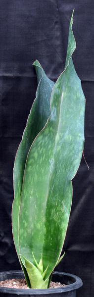 This species is one of the largest broad-leaf plants in the genus. It was collected from the eastern side of Lake Victoria in western Kenya. The leaves are dark green with numerous lineations running their length. The inflorescences are relatively short and this species tends to flower annually or biannually. These plants are rooted offsets in 5-gallon pots.