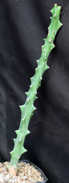 From coastal regions of India, this tree seems to us to be related to Euphorbia antiquorum, also from India. It is a densely branched short tree with yellow-green epidermis and rounded to deeply winged branches. These plants are rooted cuttings in one-gallon pots.
