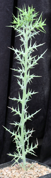This beautiful tree Euphorbia is from Madagascar. We used a large one of these for our Christmas tree for many years. An iconic element of the landscape, this tree has spiny, stout branches arising from a central trunk. The stems resemble the famous Crucifixion Thorn species from the southwestern United States and Mexico. These plants are about 15 inches tall and can be potted in one-gallon pots.