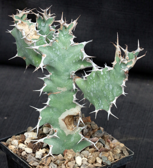 Euphorbia semperflorens is from Angola. This really gnarly species, which seems as if it bears more scars than regular epidermis, is a work of art. Slow growing, this is a classic Euphorbia for the serious collector. These plants are rooted cuttings in 5-inch pots.