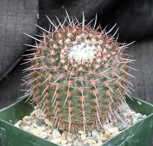 Some consider this to be a subspecies of Parodia mammulosa. From Uruguay, this small solitary globose cactus has a deep-green body with whitish-yellow spines on the ribs. The flowers are relatively large and pink to yellow in color. These plants are seedlings in 4-inch pots.