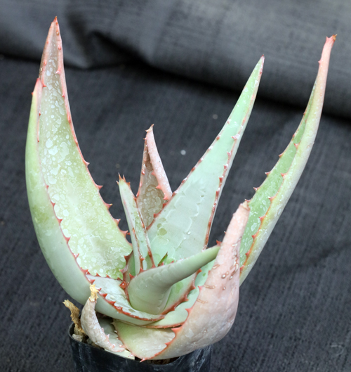 This highly variable species is from Ethiopia and Eritrea. Typically a slowly offsetting species, the rosettes bear light-green leaves with a reddish margin, although as with many Aloes the seedlings are darker green with numerous spots. The flowers can be any color from yellow to bright red. These plants are seedlings in 3-inch pots.