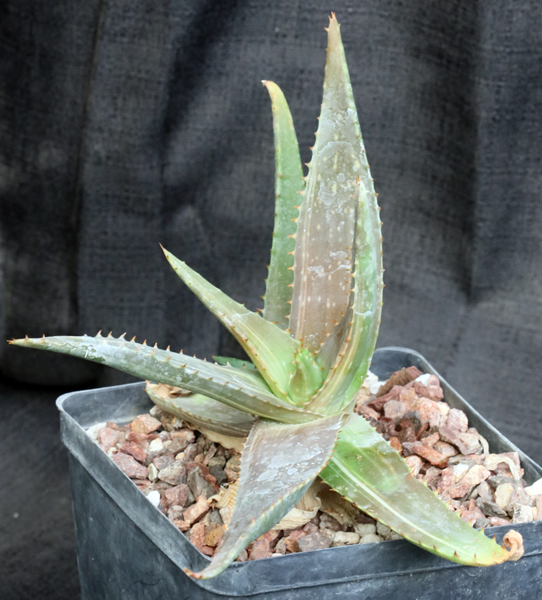 This species is widely distributed along the southeastern coast of South Africa, extending into the interior including Lesotho. This stemless, prolifically offsetting species is the classic spotted Aloe, hence the name. The leaves are variegated in several shades of yellow and green. These plants are rooted offsets in one-gallon pots.
