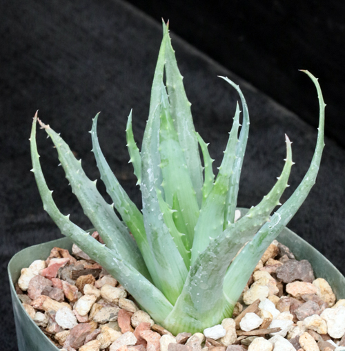 This is a natural hybrid between two widely distributed Aloes in southwestern South Africa. The plants seem to have the dwarf form of A. humilis, only larger with broader, spotted leaves. The flowers are yellow- orange. These plants are rooted offsets in 5-inch pots.