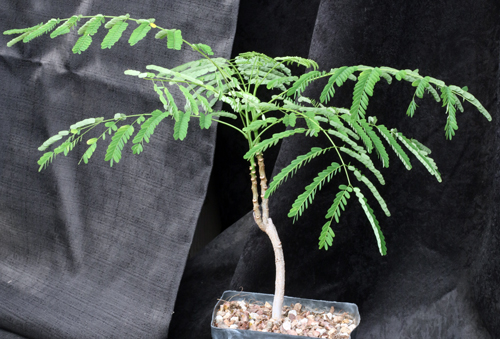 This cosmopolitan species likely originated in Madagascar. We first saw this plant all around Puerto Rico and it is common in southern Baja California, as well as through the tropics worldwide. This should tell you that this species cannot withstand frost and needs lots of water. These plants are seedlings in one-gallon pots.