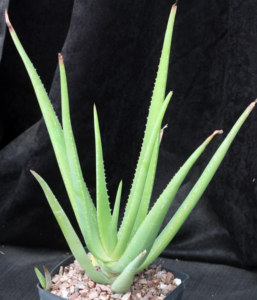 These plants are propagated from material originally collected near Dhala, Yemen. Supposedly this is synonymous with Aloe vacillans, but these are very different plants. The leaves are light yellow-green and spotted when young. The flowers are either yellow or red. These plants are rooted offsets in one-gallon pots.
