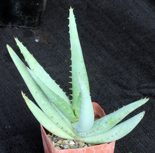 From the western provinces of South Africa that include the Great Karoo, this species is somewhat unusual within the genus. Our seed was collected near Kimberly. The most unusual part are the flowers, which are bright red and held in near-horizontal inflorescences that are distinctively club-shaped, earning the epithet. The plants are relatively slow growing and offsetting with medium rosettes of gray-green succulent leaves. This species is capable of withstanding an unknown amount of low temperature; ours have taken 18F outside with no damage. These plants are seedlings in 5-inch pots.