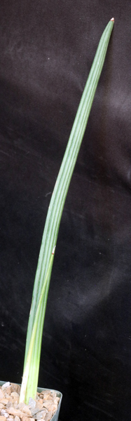 This is a relatively small species from Madagascar. These plants have long, round leaves with 5-6 channels, superficially resembling S. erythraeae and S. patens. The leaves on S. canaliculata, however, are light green compared with the typically darker S. erythraeae, which comes from region centered on Ethiopia, and are upright. These plants are rooted offsets in 4-inch pots.