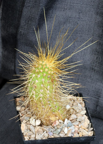 Trichocereus huasha is from northern Argentina. This species is the basis for many of the spectacular Trichocereus hybrids that have sprung up over the years. These plants have variable-color flowers, but they should be predominantly red. Whats different with these plants is the very long yellow spines. We offer rooted cuttings of this species in 5-inch pots.