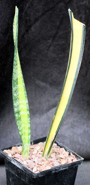 This cultivar was originally from the Huntington Gardens, attributed to K.D. Morgenstern in the UK, and distributed as ISI 2008-29. The plants have relatively broad green leaves with light yellow patterning. These plants are rooted offsets in 5-inch pots.