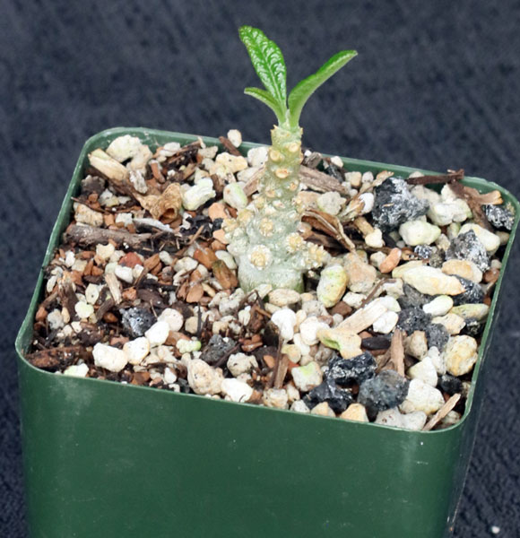 The largest species in the genus and one of the most desirable is from the island of Socotra (Yemen), where it grows from vertical limestone cliffs. These plants have light green stems and distinctive dark-green lanceolate leaves. These plants are rooted cuttings in 4-inch pots.