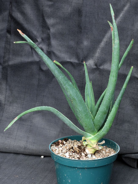 This hybrid is a cross between two tree Aloes, Aloe barberae and Aloe dichotoma. It mostly has the characters of A. barberae, with its large size and fast growth, but it retains the cryptic bark of A. dichotoma. The flowers are light red with green tips. These plants are rooted cuttings in 8-inch pots.