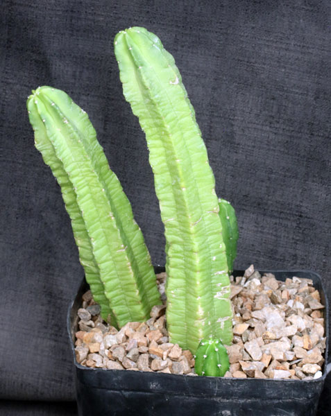 This strikingly beautiful species is narrowly distributed in northeastern Mexico in the southern Chihuahuan Desert. This species offsets prolifically and can be either upright or creep along the ground. Subspecies morricalii has long, essentially spineless and cylindrical stems are dark green in color with small white areoles. The flowers are large and purple. These plants are seedlings in one-gallon pots.