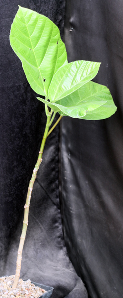 This species is from southeast Asia, ranging from India to Vietnam. This species has evergreen, large leaves that come out with a yellow-bronze color and prominent veins. Because this large tree occurs in the foothills of the Himalayas, it likely can withstand at least some frost, although we have not tried it outside in Tucson. These plants are seedlings in one-gallon pots.