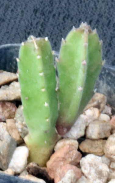 Widely distributed in western South Africa, this species has a medium green, soft body with 5-7 flutes. The flowers definitely are grand, especially in terms of size and stench; they look and smell like rotting meat. We grow this species outside in Tucson, where it typically takes flute and tip damage below 25F. These plants are seedlings in 2-inch pots.