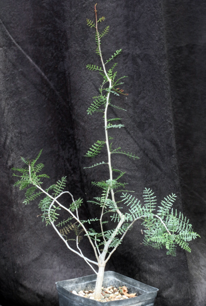 A native of Arizona and California, and extending southwards into Sonora and Baja California, this species of the genus Bursera develops a thick trunk with light gray-brown bark and finely pinnate leaves. We grow this species outside in Tucson, where it withstands 25F; heavier frost actually sculpts the plants into a nicer, more compact form. Our seedlings are in one-gallon pots.